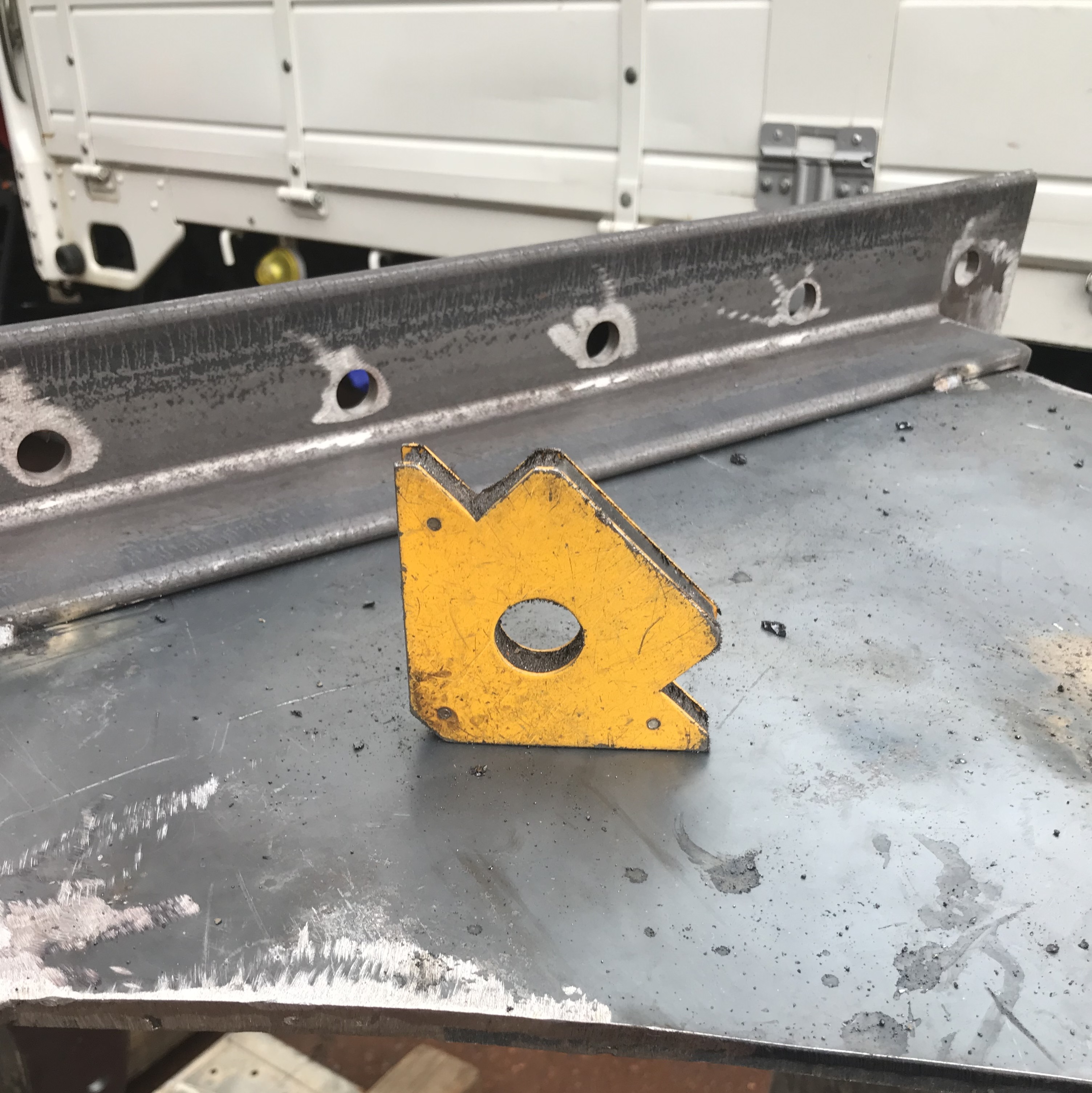 90°で溶接したい場合にこちらの磁石で鉄と鉄を固定して仮止めする便利グッズでした。