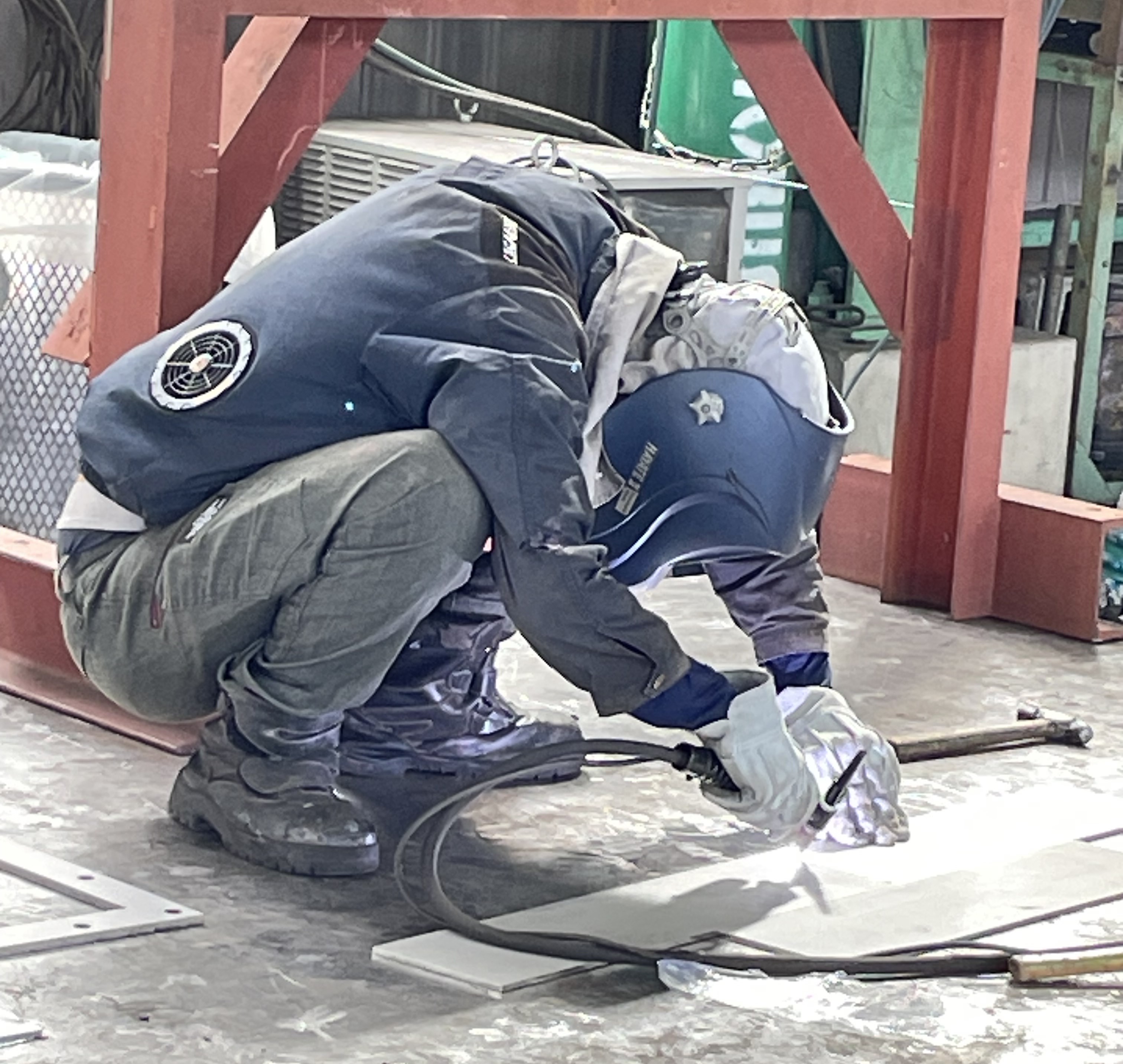 第一工場では、機設部のT主任が仮付け溶接作業を行っていました!
