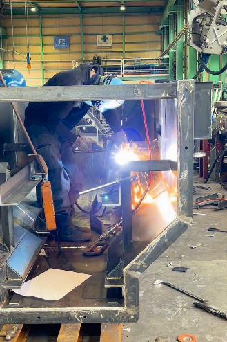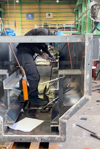 現在、灰冷却装置を作成しており、部品の溶接作業になります! 灰冷却装置は、炉内に漏入する空気を渡断する構造になっています。 排出される焼却灰の中にまだ灼熱しているものが含まれていることもあります。
