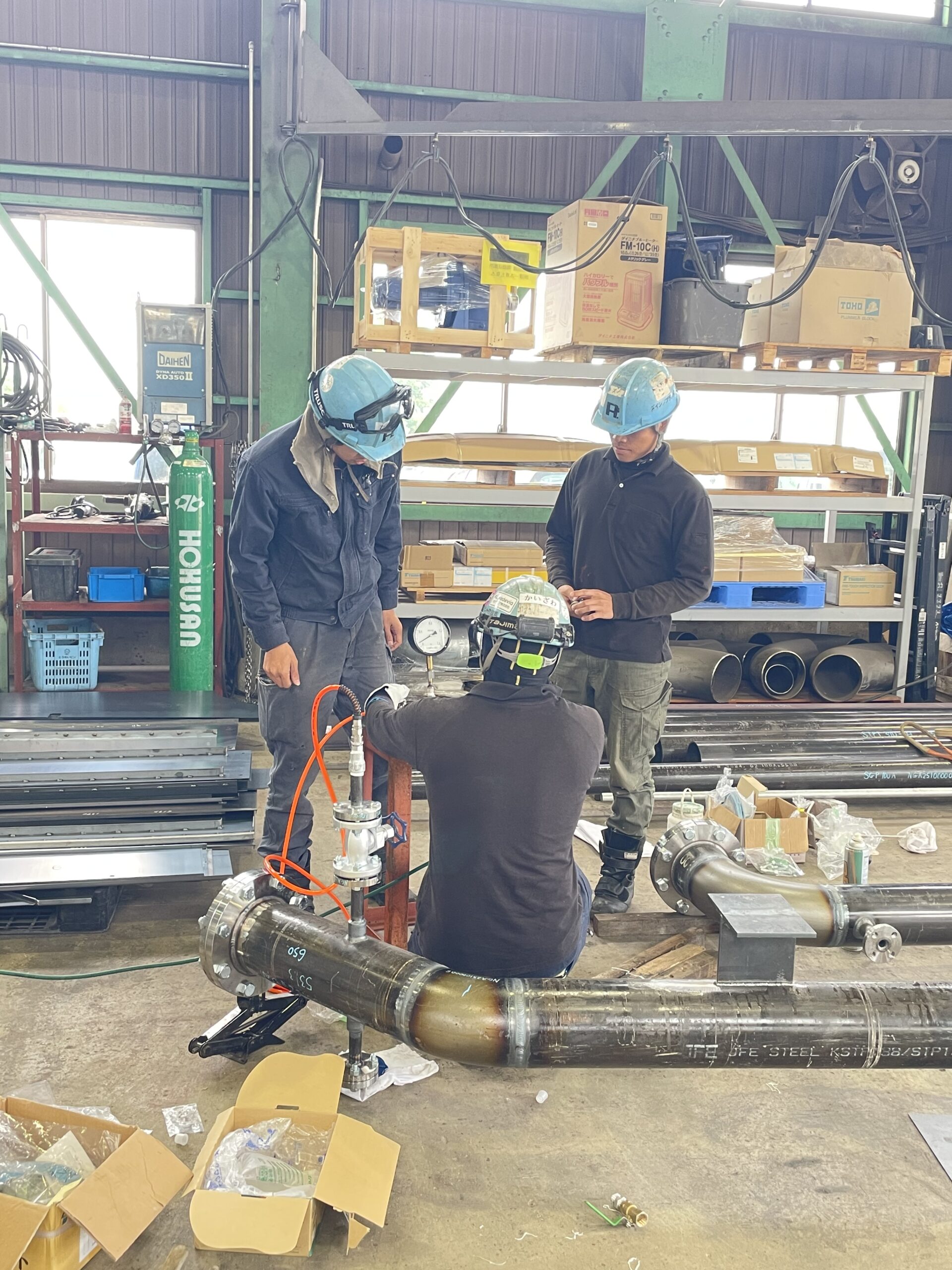 まず初めに、K部長が配管のITG溶接を行っていました。