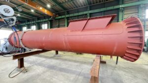 インドネシア実習生のHさんが、ごみ処理場で使われる煙突の作業を行っていました。