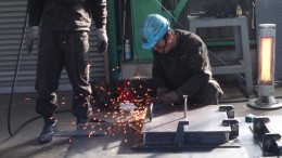 作業台の上で溶接をしている様子です。