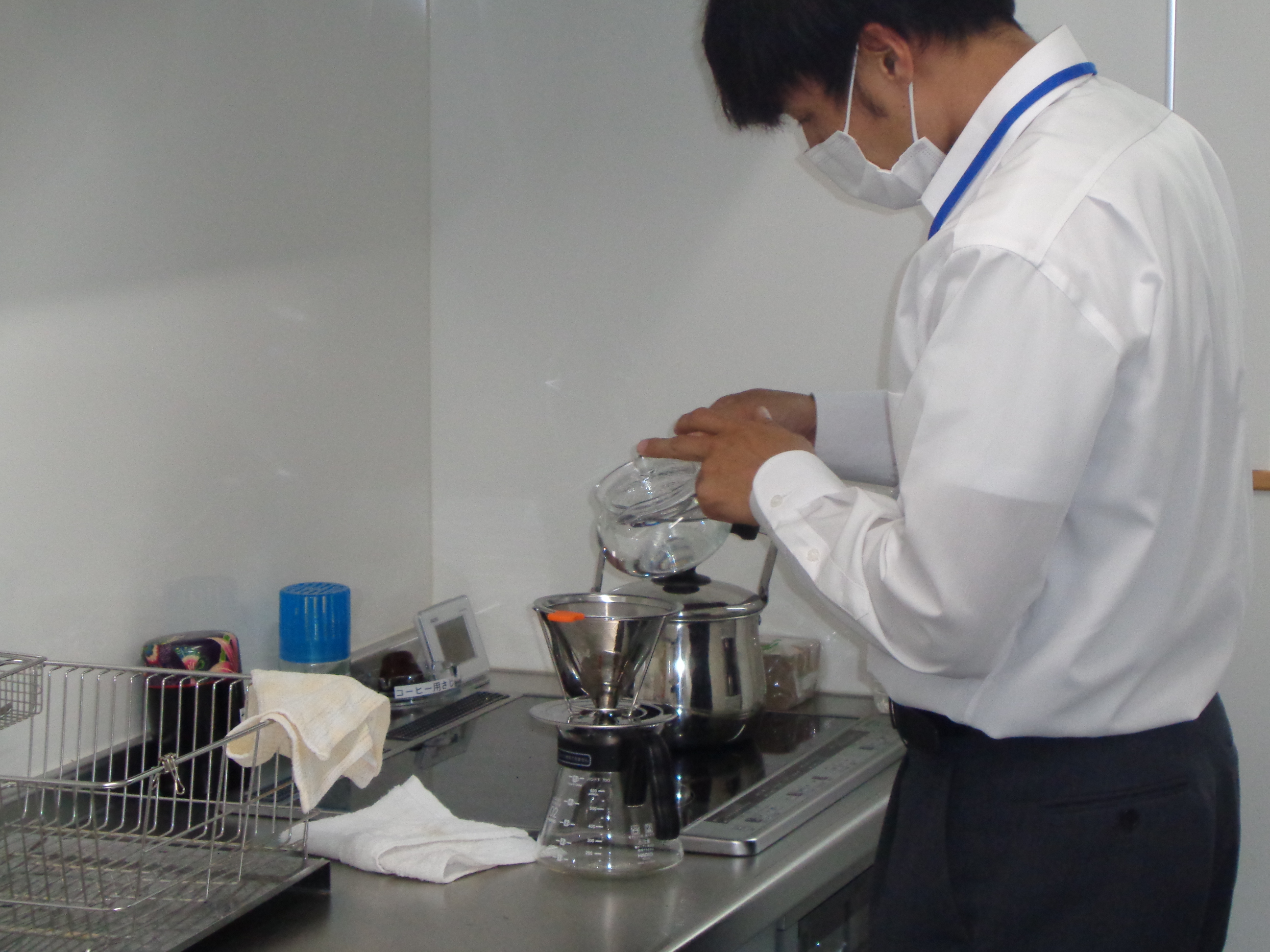 さて、今年入社した2人の社員のアイスコーヒー作りの様子です。